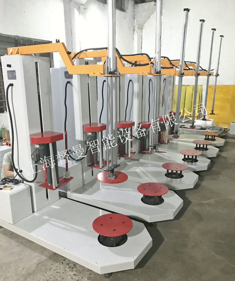PLC 可编程控制整机运行,气动压顶装置,顶部、底部缠绕圈数分别可调;膜架上下次数可调。